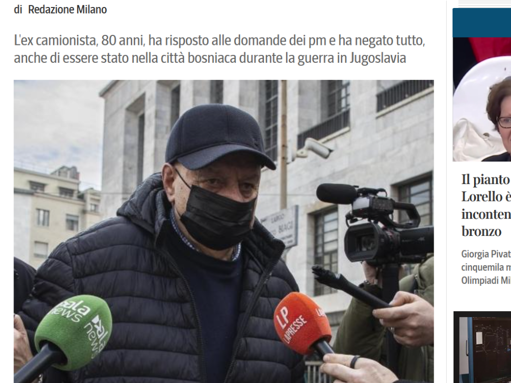 Inače, osamdesetogodišnji bivši vozač kamiona iz Italije saslušan je jučer pred tužiteljstvom u Milanu zbog sumnje da je tokom agresije na Bosnu i Hercegovinu učestvovao u monstruoznom “lovu na ljude” u opkoljenom Sarajevu.