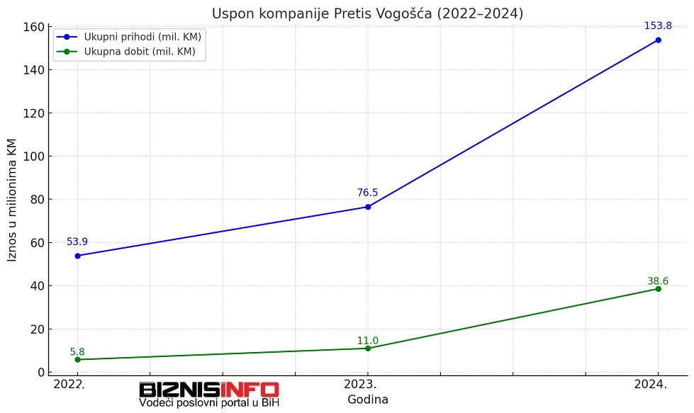 Pretis je u prošloj godini imao ukupne prihode od čak 153,8 miliona maraka. Da bi se shvatilo o kolikom rastu je riječ, podsjetimo da su godinu ranije prihodi bili 76,5 miliona maraka, piše BiznisInfo.ba. Godinu prije toga prihodi su bili 53,9 miliona KM.